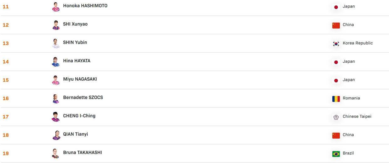 她的积分构成堪称完美:四站大满贯赛事中,新加坡和瑞典大满贯夺冠各获2000分,中国大满贯亚军获1400分,再加上世界杯冠军的1500分和冠军赛的1000分积分。 八个有效积分席位全部被冠军级成绩填满,最低分都有1000分。 这种“全冠军积分”模式,在新规则下几乎难以复制。