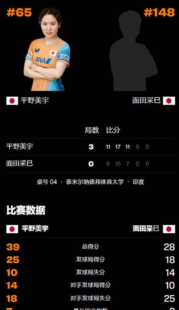 2026世界杯赛程,世界杯球队,足球预测,世界杯投注,赛事直播一场看似轻松的3-0横扫,背后却是一场单局打到17-15、多次挽救局点的生死鏖战。 2026年2月13日,在印度金奈举行的WTT球星挑战赛女单赛场上,日本前世界冠军平野美宇迎来了自己的首秀。 她的对手是世界排名仅第148位的队友面田采巳,这本该是一场毫无悬念的比赛。 然而,大比分3-0的最终结果,却掩盖不了平野美宇在比赛过程中暴露出的巨大挣扎和状态危机。