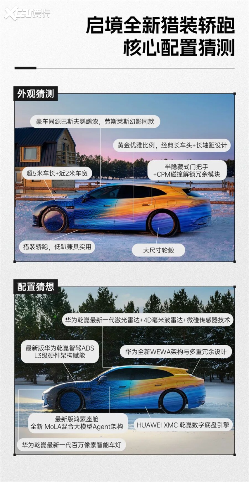 在他们身旁的,正是裹着神秘车衣的启境全新猎装轿跑。这也让人好奇,猎装轿跑作为相对小众的市场,华为乾崑与启境为何全力ALL IN,双方又将为给这一市场带来怎样的惊喜?