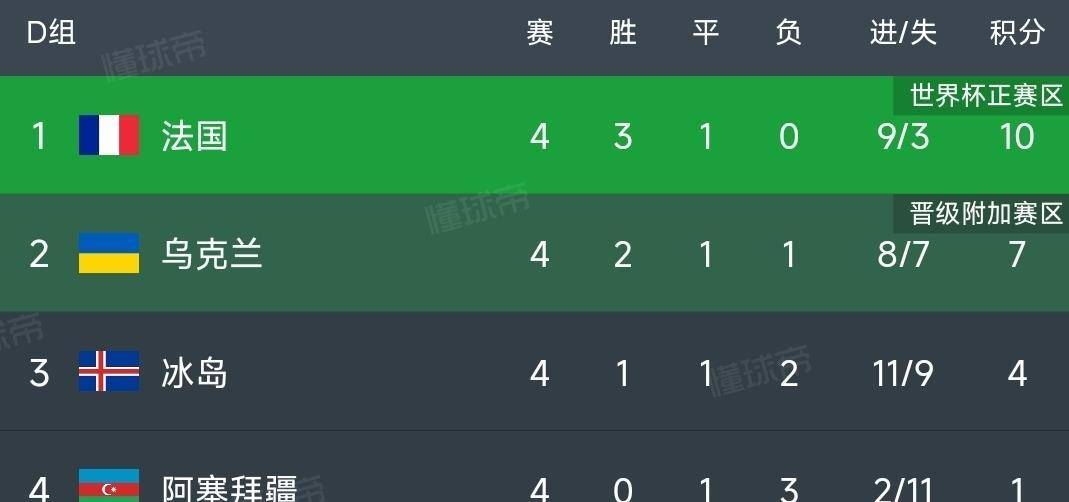 D组中,法国队被冰岛逼平后积10分继续领跑,但这场平局无疑给高卢雄鸡敲响了警钟。