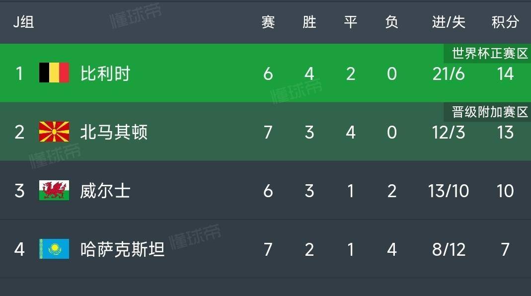 北马其顿积12分位居第二,威尔士少赛一场积10分排名第三,三队之间的竞争依然充满悬念。