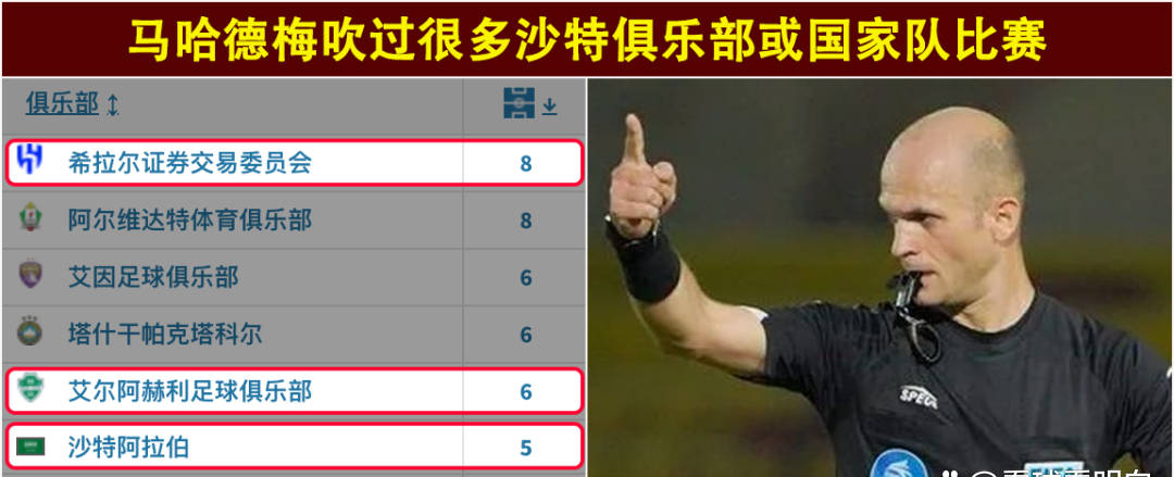 而他执法过最多的国家队比赛,巧合地正是沙特国家队,在上届世预赛中,他执法了沙特两场非常关键的主场比赛,分别是1-0战胜日本和1-0战胜澳大利亚,表现相当出色。