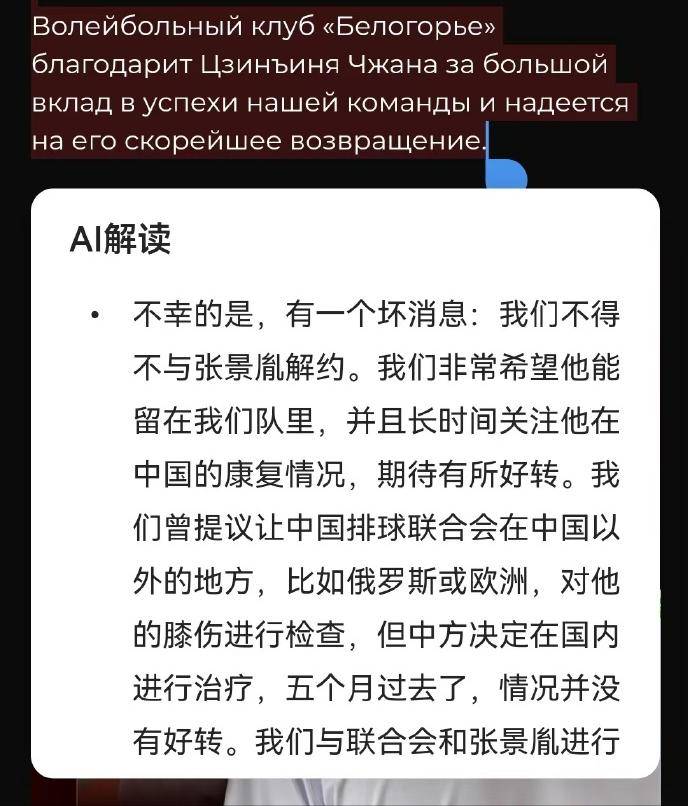 在别尔哥罗德宣布解约的声明中提到,俱乐部曾建议中国排协安排张景胤去俄罗斯或欧洲进行更详细的膝伤检查,但这个建议并未得到采纳。如果张景胤能够早些进行手术或去海外检查,恢复期可能会大大缩短。随着这次解约,张景胤的留洋生涯画上了句号,接下来他将回到国内,专注于全运会和国内联赛。希望浙江男排在全运会期间,能更多考虑张景胤的身体状况。