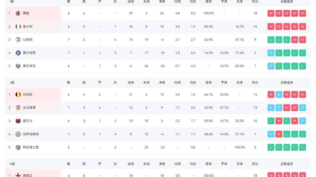 其中,三次夺得世界杯冠军的意大利队在小组赛中处于不利位置,排名第二,落后于挪威。尽管他们有可能参加附加赛,但如果再次未能晋级,连续三届缺席世界杯将是对意大利足球的巨大打击,毕竟此前他们已经两次在附加赛中折戟。