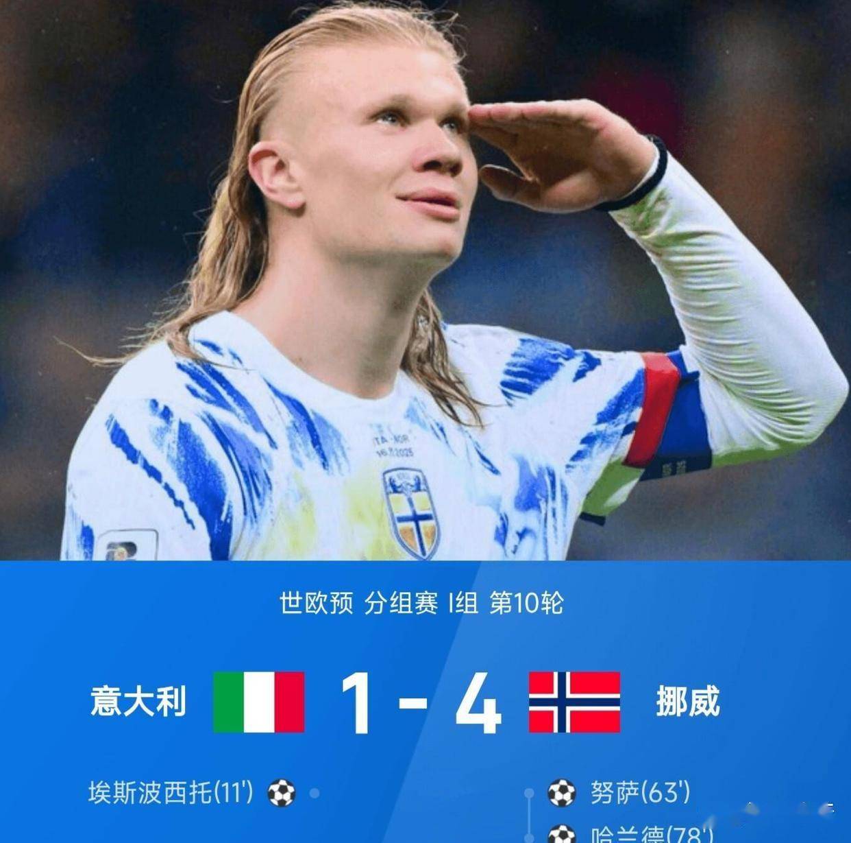 当意大利球员瘫倒在奥斯陆的草皮上,哈兰德张开双臂迎接属于挪威的欢呼。 这一刻,欧洲足球的旧秩序被撕开了一道裂口。