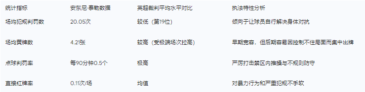 泰勒曾在2024年底切尔西对阵伯恩茅斯的比赛中创纪录地出示了14张黄牌,这反映出他一旦认为比赛公平性受到威胁,会迅速转向铁腕管理 。对于热刺而言,他们在罗梅罗禁赛后,防守动作可能更加毛躁。德拉古辛作为年轻中卫,在面对泰勒这种允许高强度对抗的裁判时,容易因过激的二分之一球争抢而领红或送点。